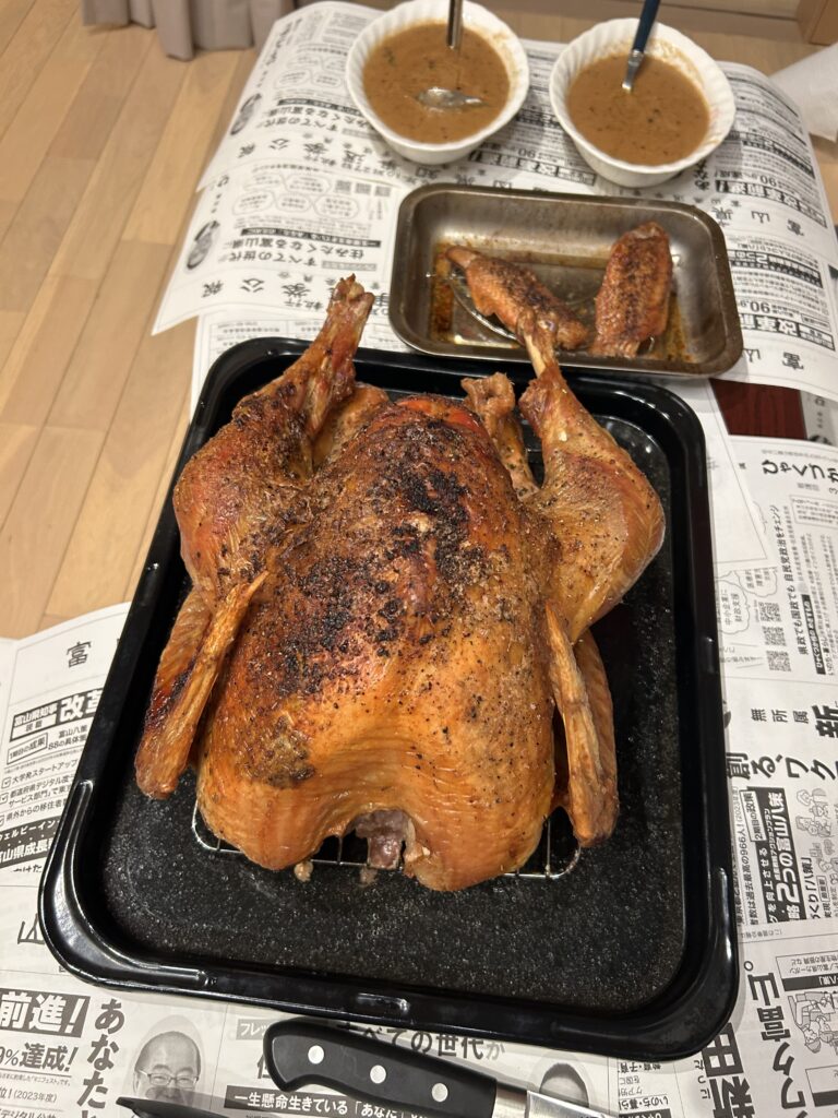 このサンクスギビングの味を地元の皆様に少しでも味ってもらうため、今年も黒部市国際文化センターコラーレで「アメリカ風サンクスギビングパーティー」を行う予定です。去年と同じように七面鳥の丸焼きなどの伝統的なアメリカン料理を提供する予定で、食べながら色んな人と語り合える素晴らしい機会です。